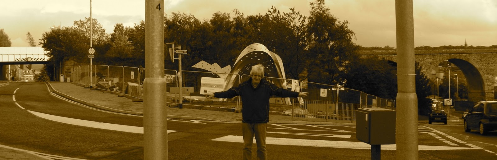 A friendly reader of my writings had asked me if I wouldn’t mind showing them the monuments in Burnley, as they would be town visiting a relative in a nearby town late one afternoon. I said I would and decided to visit the actual ‘Rain Bow Gate’ at dusk to see it whilst it is ‘illuminated’, so to speak. It is quite impressive when lit up at night, but sadly as we approached the Gate I realised the lights were not switched on (or not working at all). I felt very disappointed. Maybe I arrived just a bit too early and of course electricity is expensive these days.